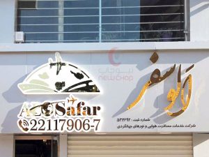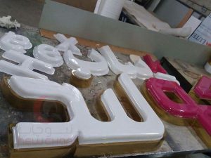 حروف برجسته، چاپ یا متریال اصلی تابلو ساخته میشود.